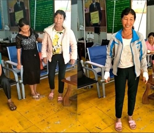 治疗前4个人抬进诊所,经过一个月的治疗,康复如常,又捡回了一条生命,高兴极了。